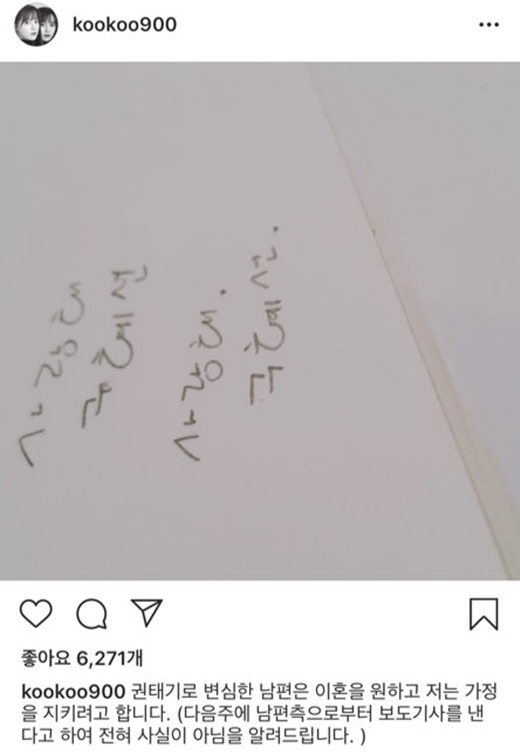구혜선은 ‘구혜선, 사랑해’라고 적은 글을 촬영한 사진과 “권태기로 변심한 남편은 이혼을 원하고 저는 가정을 지키려고 한다. 진실되기를 바라며"라는 글을 올렸다.