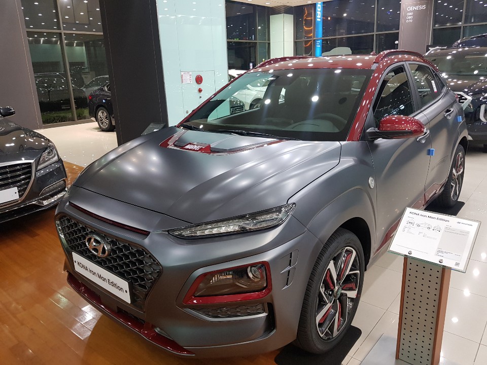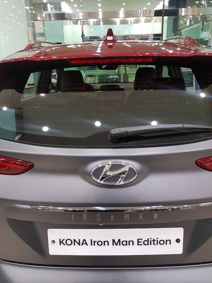 "한번 타보자" (현대차 주요 매장에 진열된 코나 아이언맨)