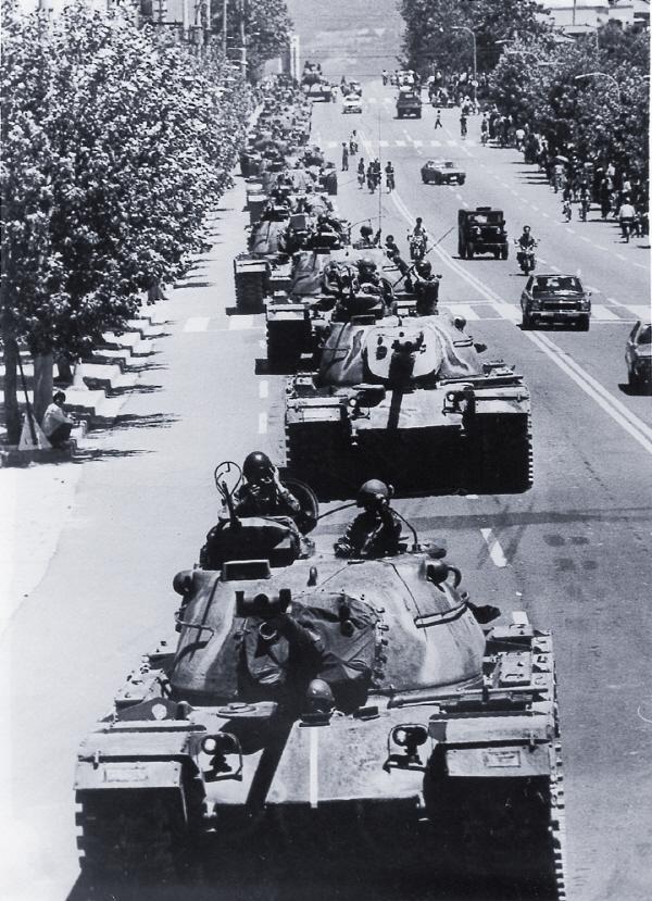 김씨는 “자신도 모르는 새 이들 틈에 끼어 맨 앞에 서게 됐다. 이때 장갑차에서 ‘끼익’하는 소리와 함께 문이 열리더니 총구가 튀어 나왔고 하늘에 총성이 울려 퍼졌다”고 전했다.